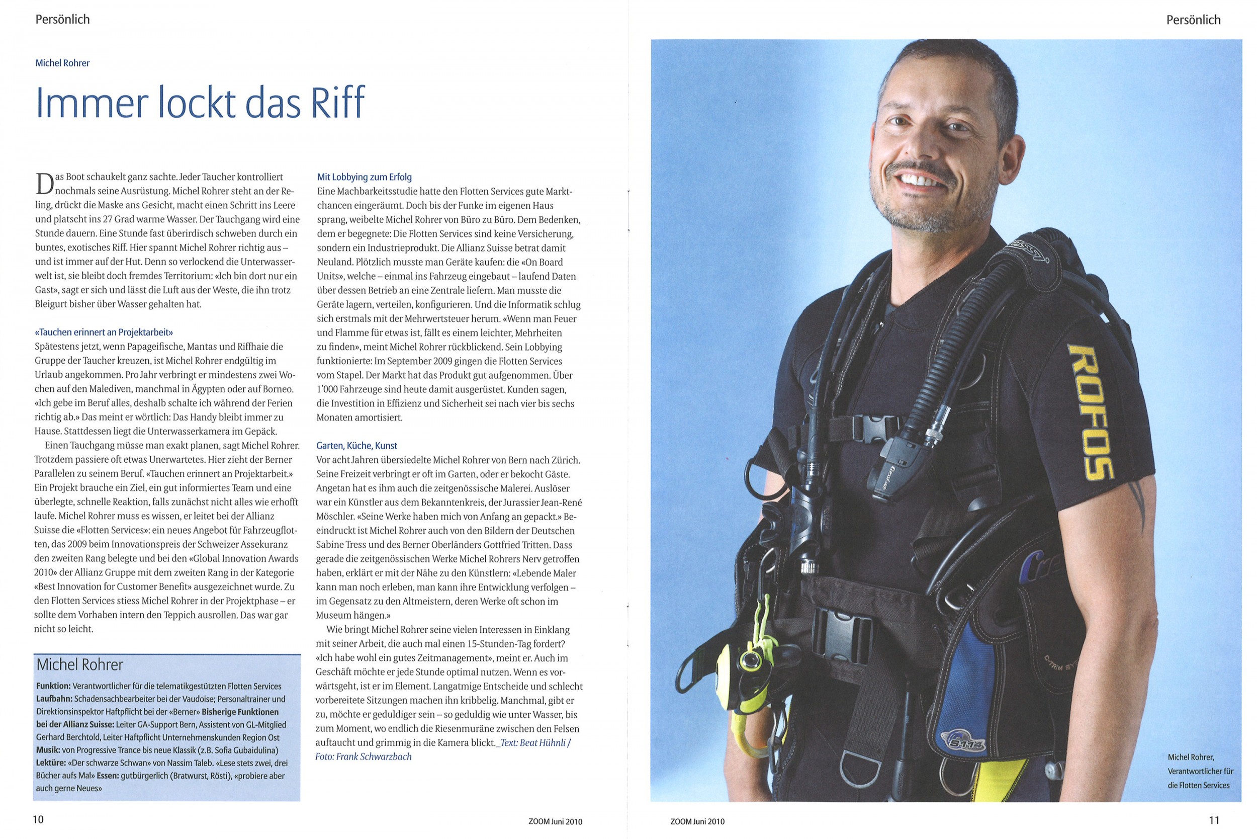 Fester Teil des Hefts war eine Bildgeschichte: Man begleitete Mitarbeiter durch ihren Arbeitstag – eine schöne, aber aufwendige Darstellungsform. Mit dem neuen Konzept wurde aus der Bildgeschichte ein doppelseitiges Porträt, das ich bisher rund 20-mal geschrieben habe.